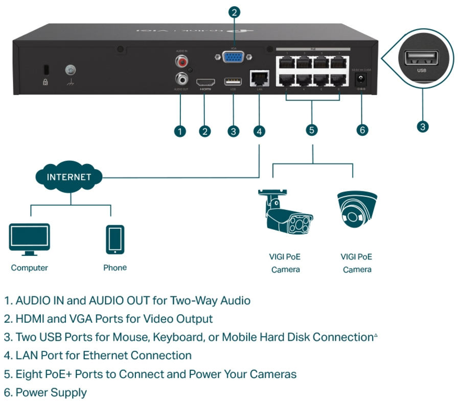 Security Never Shuts Down VIGI NVR1008H-8MP 8 Channel PoE+ Network Video Recorder