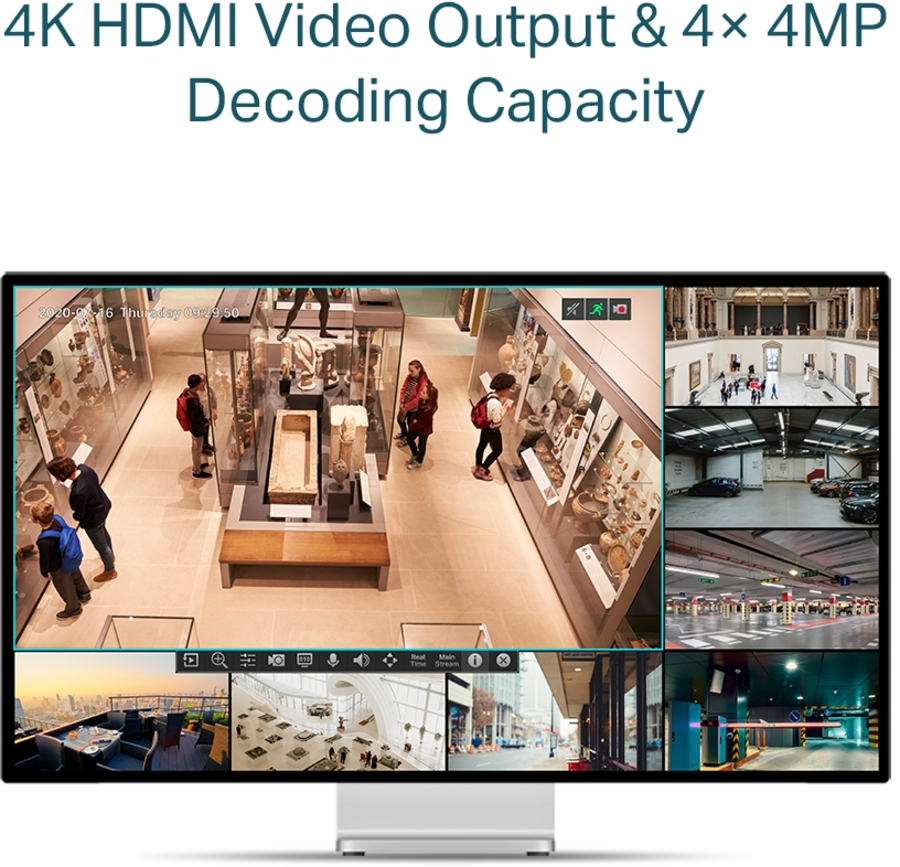 Every angle all on one screen. 4K HDMI Video Output & 16MP Decoding Capacity Sharp image definition up to 8MP and an 8-channel display ensures you capture every detail, from every angle.