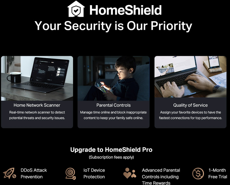 Your Security is Our Priority With TP-Link HomeShield, enjoy advanced security features that deliver a safe environment that protects your family and network's data and privacy.