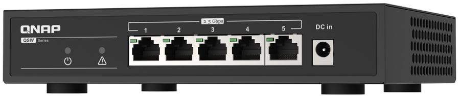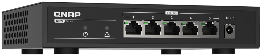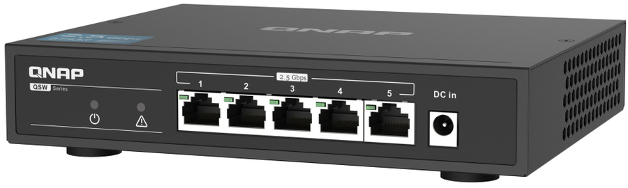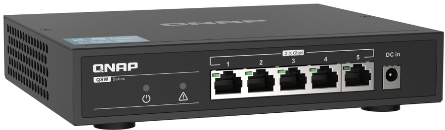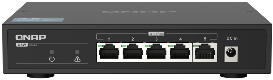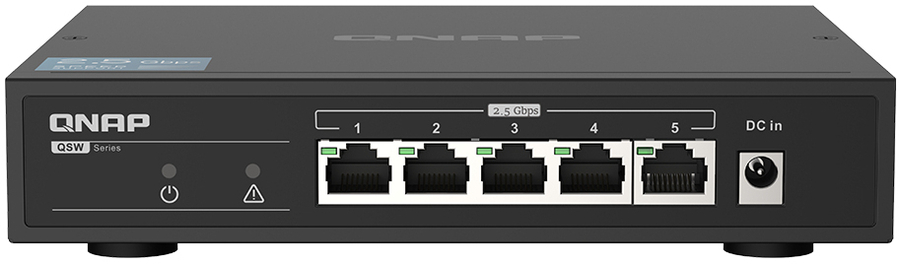 QSW-1105-5T Affordable 5-port 2.5G switch Enjoy 2.5x high-speed transmission by connecting more 2.5G devices, such as, NAS, Wi-Fi 6 Router/AP, PC/laptop, etc.