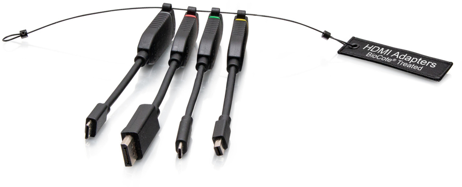 Universal 4K HDMI Dongle Adapter Ring including Color Coded Mini DisplayPort, DisplayPort, USB-C, and Mini HDMI Adapters with Antimicrobial Protection Technology