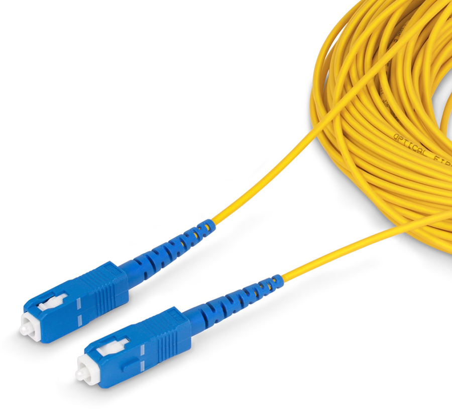 Precision-manufactured ceramic ferrules ensure accurate fiber alignment for an insertion loss below 0.3dB. Ultra Physical Contact (UPC)-polished SC to SC fiber ends greatly improve return loss characteristics over older PC polishing techniques. The Bend Insensitive fiber core is surrounded by a layer of low refractive index material. This material reduces the amount of light that can escape the fiber cable by reflecting the light back into the fiber. The OS2 fiber patch cord is engineered for low attenuation and performance that exceeds ITU-T G652.D/G657.A1 and IEC60703-2-50 type B1.3/B6.a1 industry standards.