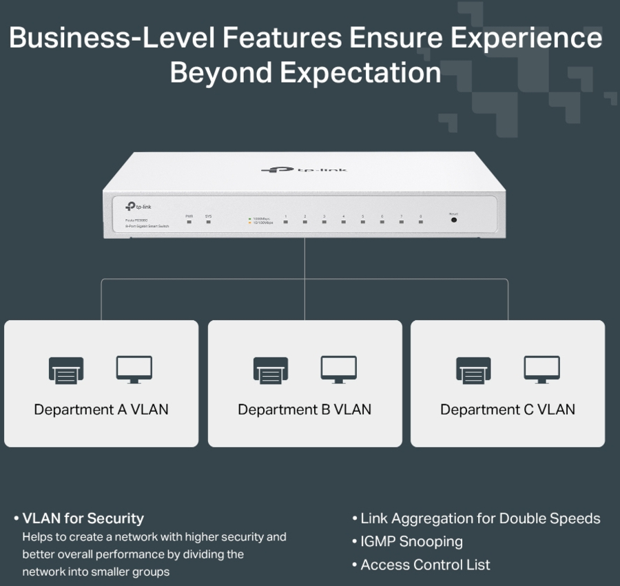 VLAN for Security Helps to create network with higher security and better overall performance by dividing network into smaller groups. |