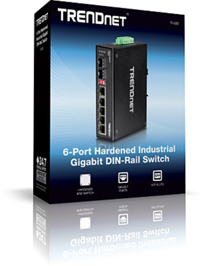 6-Port Hardened Industrial Gigabit DIN-Rail Switch. TRENDnet's TI-G62 is a reliable IP30 unmanaged DIN-rail switch with hardened components rated for extreme industrial environments. |