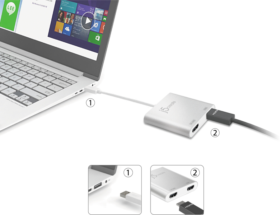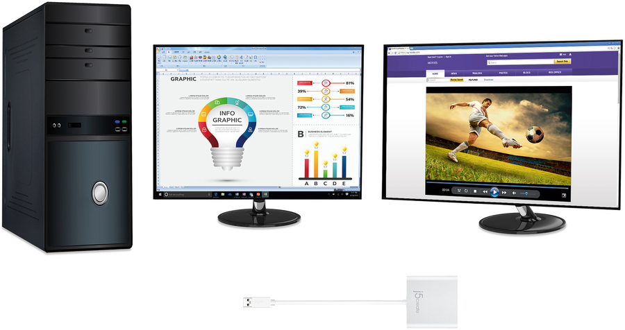 The JUA365 USB 3.0 to Dual HDMI Multi-Monitor Adapter acts as an external video card for your Mac or PC. It allows you to add an additional monitor/display through your USB 3.0 port. There's no need to open your computer to add an expensive video card. With the USB 3.0 to Dual HDMI Multi-Monitor Adapter you simply load the drivers, plug the adapter into the USB port, then plug in the HDMI monitor cable into the adapter and you are ready. The Adapter supports three viewing modes. Primary Mode allows you to have individual applications open on each monitor, vastly improving productivity. Extended Mode allows you to extend your desktop across multiple displays, which is great for spreadsheets. Mirroring mode is used to clone one screen onto another, which is ideal for presentations. With plug-and-play functionality between your computer and second monitor or projector, you will be able to create a new visual environment in seconds.