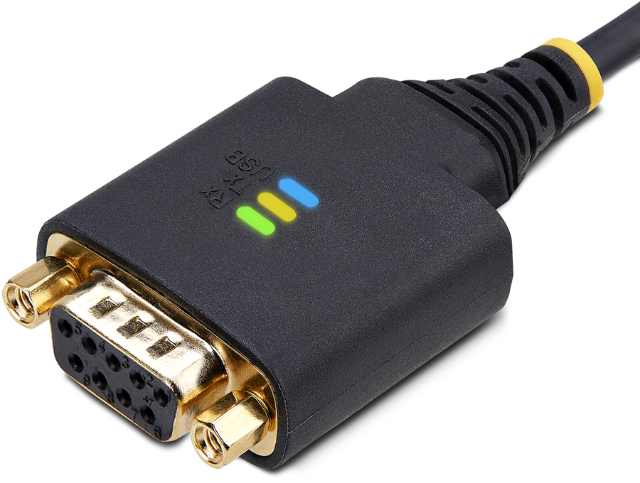 Data transmission and reception LED indicators on the adapter provide real-time monitoring of port activity. The USB LED indicates when the adapter has successfully enumerated on the desktop or laptop. All the LEDs aid with diagnostics and troubleshooting.