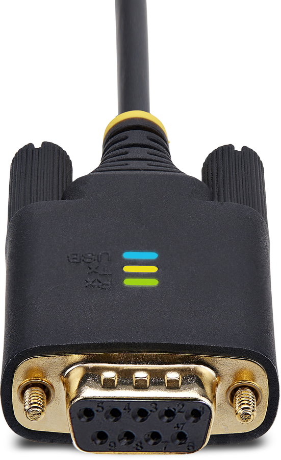 The 6.6-foot (2-meter) Null Modem USB Serial Adapter adds an RS-232 serial DB/DE-9 (female) connector to a desktop or laptop via a USB Type-A port. Secure the adapter to a serial device, using pre-installed and removable slotted D-Sub thumbscrews or install the included DB-9 Nuts for compatibility with other serial peripheral devices or cables.