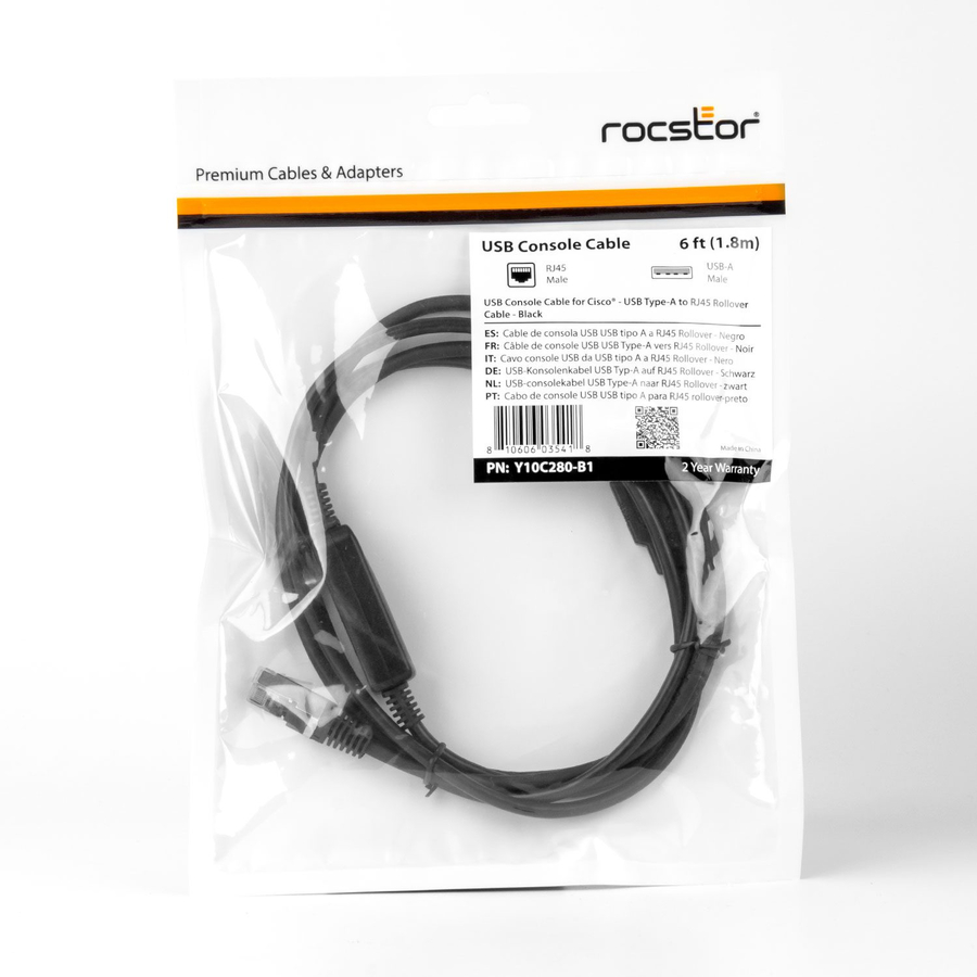 Rocstor Premium Cisco USB Console Cable – USB Type-A to RJ45 Rollover Cable, black