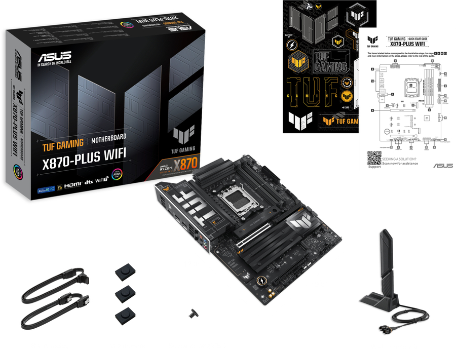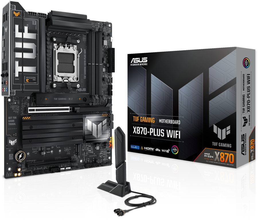 TUF GAMING X870-PLUS WIFI ASUS TUF GAMING X870-PLUS WIFI takes all the essential elements of the latest AMD Ryzen™ processors and combines them with game-ready features and proven durability. Engineered with military-grade components, an upgraded power solution and a comprehensive cooling system, this motherboard goes beyond expectations with rock-solid and stable performance for marathon gaming. TUF GAMING motherboards also undergo rigorous endurance testing to ensure that they can handle conditions where others may fail. This platform delivers the power and connectivity that advanced AI PC applications demand. |