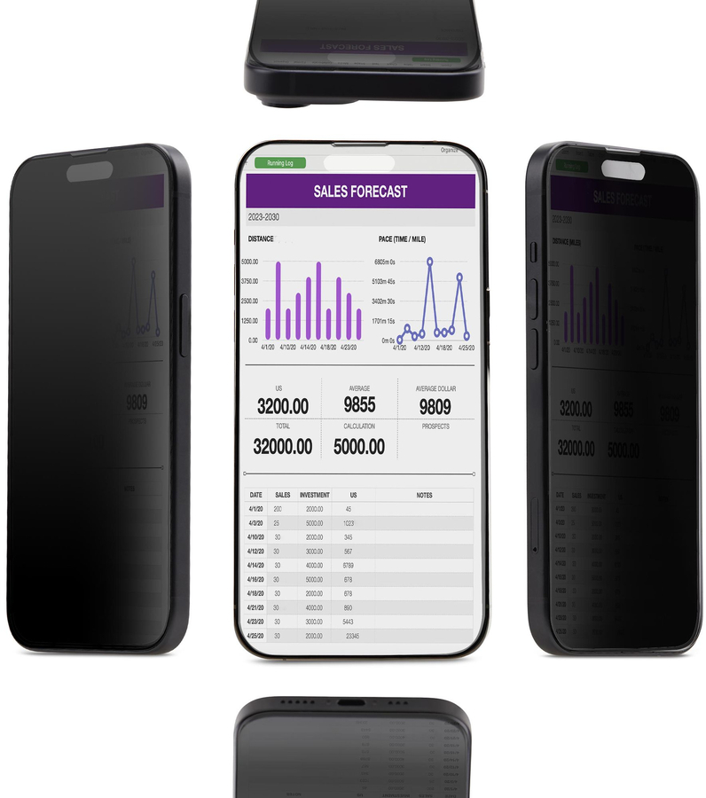This Privacy Screen for the iPhone 15 Pro Max smoothly transitions from a clear view to an obscured screen beyond the intended viewing angle, significantly enhancing visual privacy in office or public environments.