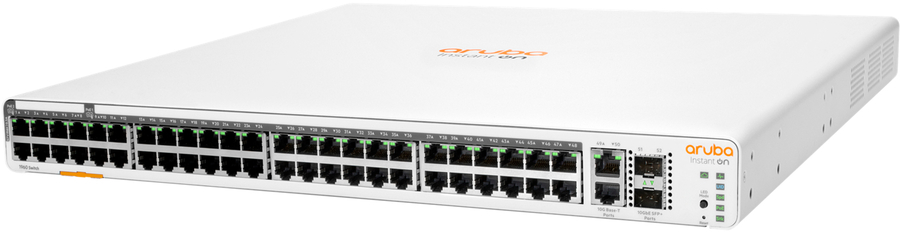 High-level Gigabit with 10GbE Networking for Advanced Small Businesses - Each model of the Aruba Instant On 1960 Switch Series includes four 10GbE connections to connect to servers, network storage devices, or to other switches. - Two connections of 10GBASE-T deliver 10GbE over copper Category 6a cabling for simple, affordable, high-bandwidth connections to a maximum distance of 100 meters. - With PoE models, up to 30W PoE power delivery is available for Class 4 PoE devices like access points, surveillance cameras and VoIP phones, and up to 60W PoE power delivery is available for Class 6 PoE devices like pan-tilt zoom cameras and video-enabled IP-phones.