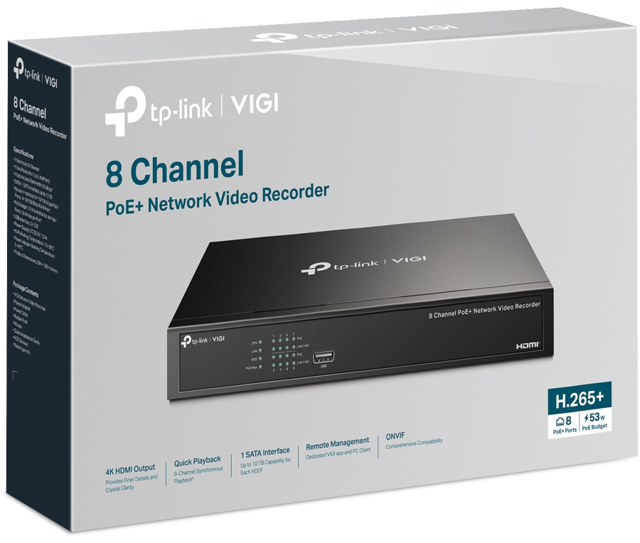 TP-Link VIGI NVR1008H-8P 8-Channel PoE+ Network Video Recorder
