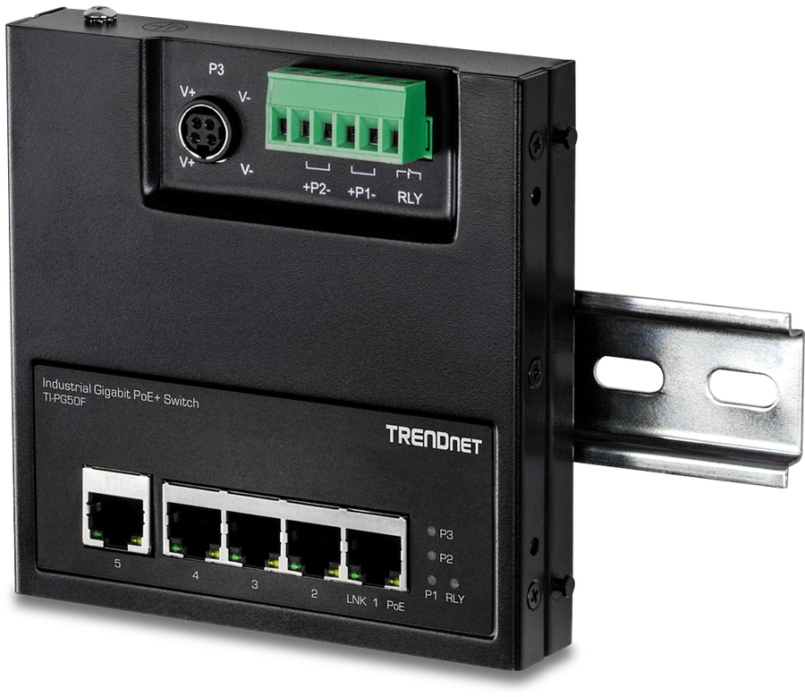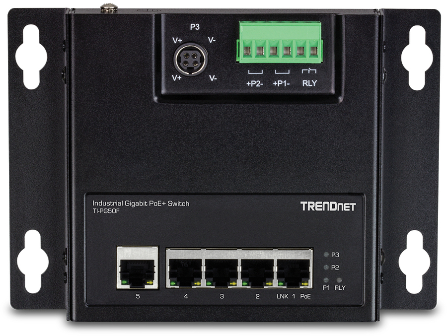 5Port Industrial Gigabit PoE+ WallMounted Front Access Switch |