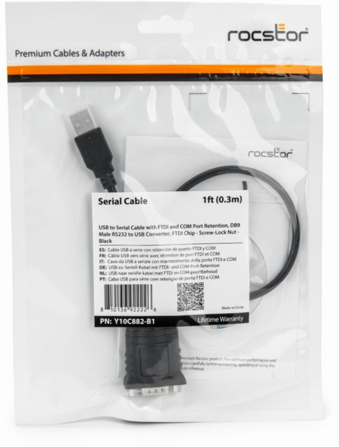 The Rocstor 1ft USB to RS232 Serial DB9 Adapter Cable offers a professional-grade solution for connecting legacy or industrial RS232 serial devices to your laptop or desktop through a USB port, eliminating the need to upgrade serial peripherals. This adapter retains assigned serial COM port values in nonvolatile memory, allowing for seamless reconnections even when switching USB ports. It provides a versatile connectivity solution, bridging older serial devices with newer USB-capable computers, and offers broad compatibility with Windows, Linux, and Mac OS, ensuring easy integration into diverse operating environments. Backed by Rocstor 2-year warranty and free technical support. |