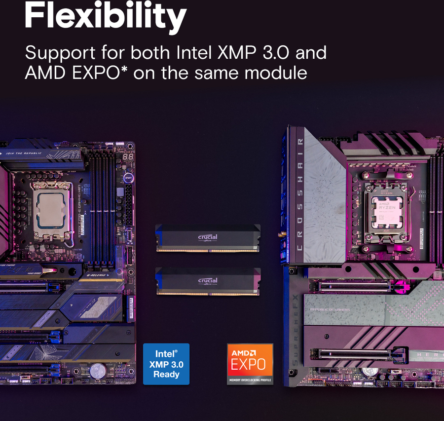 Crucial Pro OC 32GB 6400 CL40 DDR5 UDIMM Memory Module Black