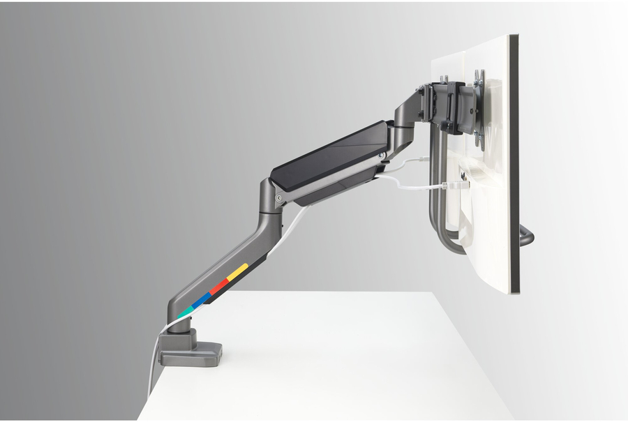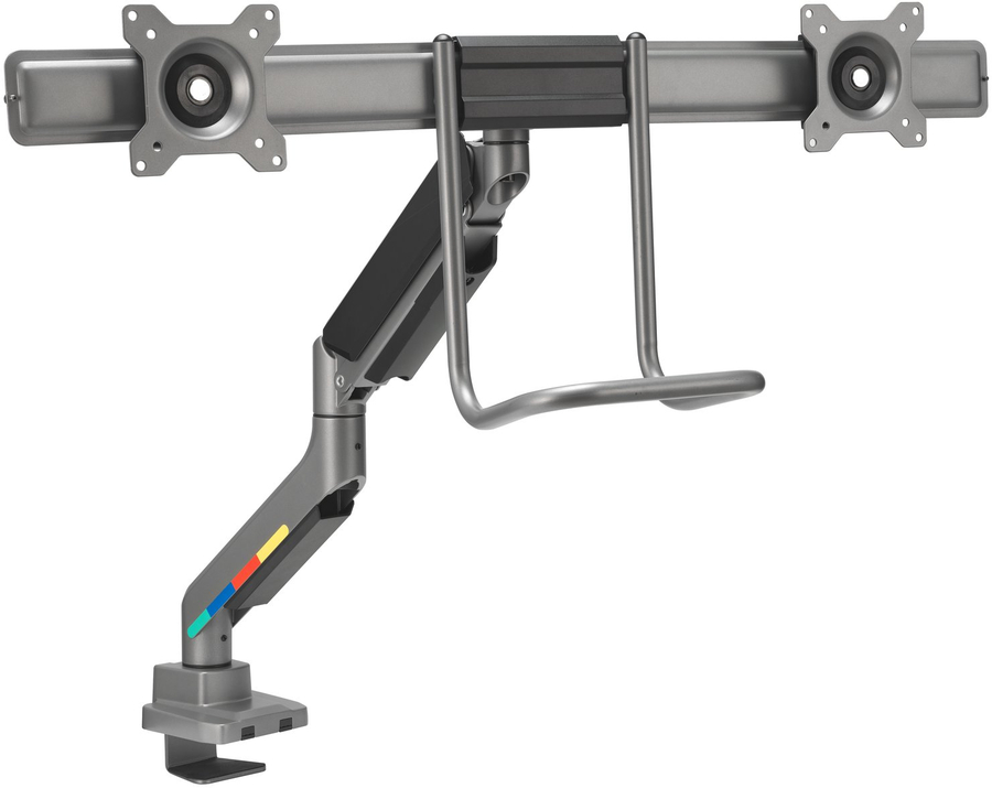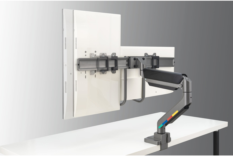 An ideal solution for shared workspaces, SmartFit™ Dual Monitor Arm with Crossbar and Handle harnesses the power of gas spring technology to unlock effortless ergonomic control for your dual-monitor setup. Simply grasp the easy-grip handle to smoothly raise or lower your monitors with the lightest of touches. The gas spring makes even the heaviest dual-monitor configurations feel weightless, enabling you to fine-tune ergonomic positioning throughout the day with less physical exertion. With a separate horizontal adjustment for each monitor, achieving the perfect viewing setup is easy. The innovative curved horizontal rail accommodates two side-by-side 32” monitors weighing up to 9kg (19.8lbs) each, together with the C-clamp providing hassle-free installation. Includes a 5-year limited warranty. |