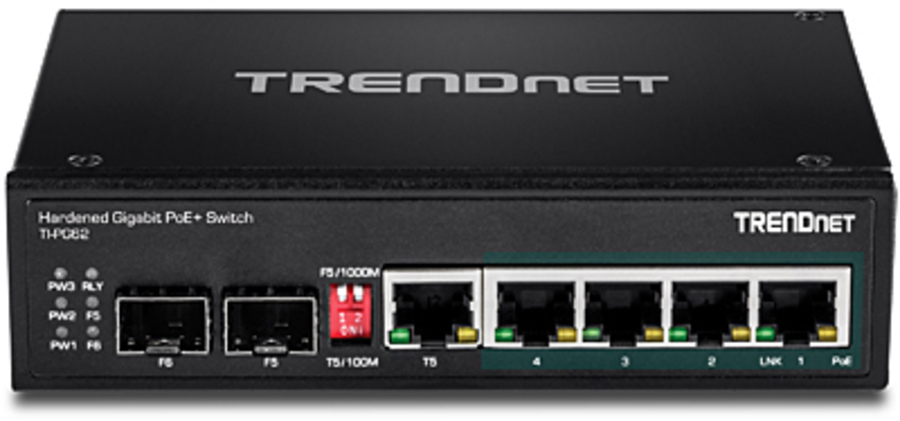 6port hardened Industrial Gigabit PoE+ Switch 5 Gigabit / 1 shared SFP / 1 dedicated SFP |