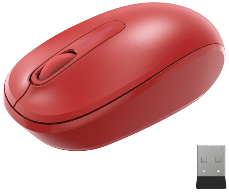 Comfortable, colorful, portable. The Wireless Mobile Mouse 1850, Designed by Microsoft™, is made for life on the go. With built-in transceiver storage and a comfortable, ambidextrous design, its scroll wheel and compact silhouette make it ideal for creativity on your terms.