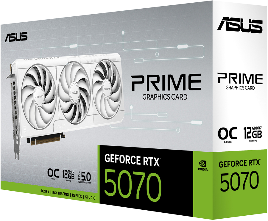 Primed for Power Experience Primal performance with the Prime GeForce RTX 5070 White Edition, an SFF-Ready Enthusiast GeForce Card featuring a 2.5-slot design for expansive compatibility, enhanced by a triple-fan setup for supreme airflow design for supreme cooling.