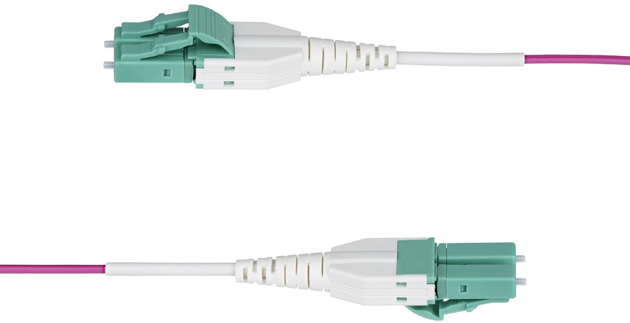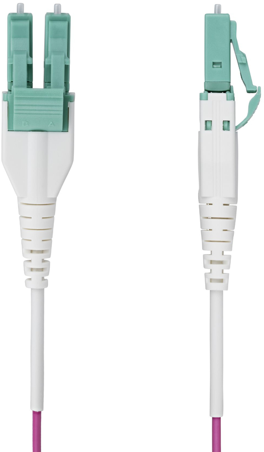 This OM4 LC to LC Multimode Duplex Fiber Optic Patch cable delivers reliable connectivity across 40 and 100 Gigabit networks. The TIA-standard Erika Violet jacket clearly distinguishes OM4 from Aqua OM3/OM4 cabling, eliminating guesswork in critical network setups. The compact uniboot connector design enables easy insertion and removal in high-density installations.