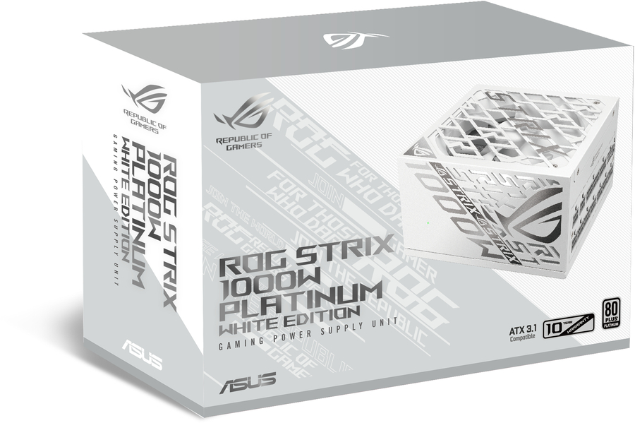 10-year Warranty A decade of power We're so confident about the reliability of the ROG Strix 1000W Platinum White Edition that we back it with a 10-year warranty. |