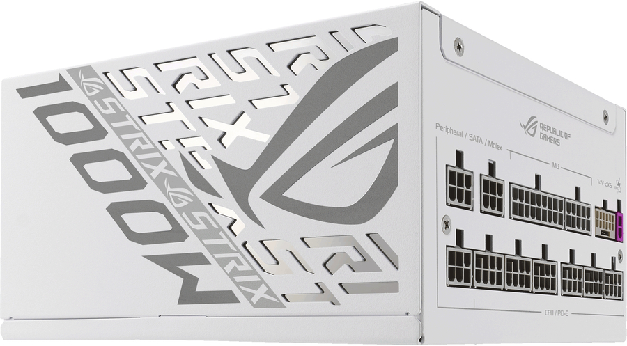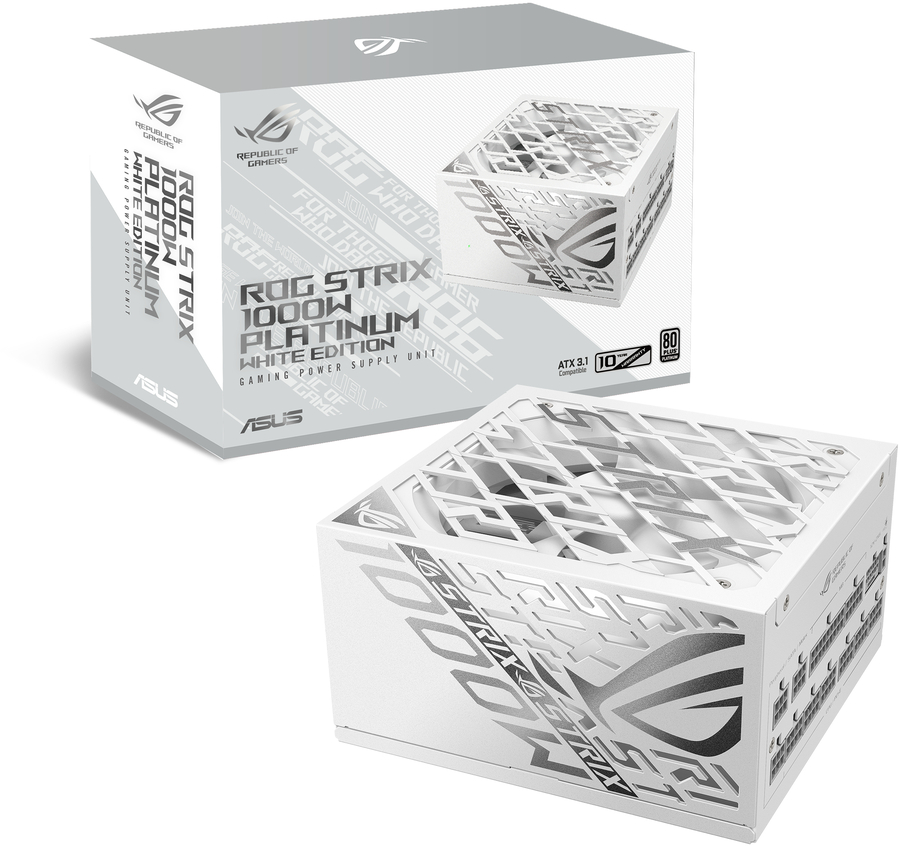 ROG Strix 1000W Platinum White Edition is a cool and quiet PSU with stable power delivery, engineered for efficiency with GaN MOSFET and “GPU-FIRST” intelligent voltage stabilizer in striking style.