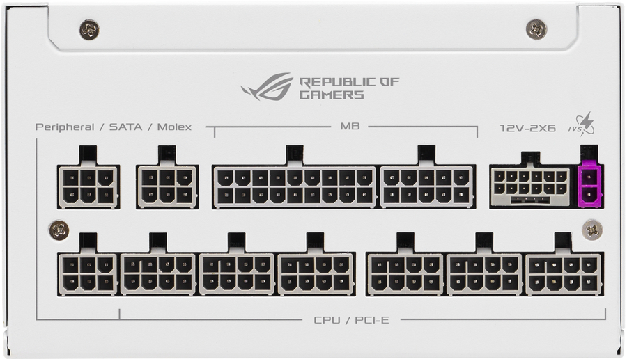 Superior Stability. Next-Level Efficiency The ROG Strix Platinum White Edition PSU delivers the top-tier performance and unwavering stability demanded by gamers. Featuring next-gen GaN MOSFET for superior power efficiency. The “GPU-FIRST” voltage sensing with patented-intelligent voltage stabilizer ensures a steady flow of power to the graphics card. Plus, it is ready for latest hardwares with ATX 3.1 compliance and a native 12V-2x6 connector. The ROG Strix Platinum Series ensures your high-end rig has the power to conquer any challenge.