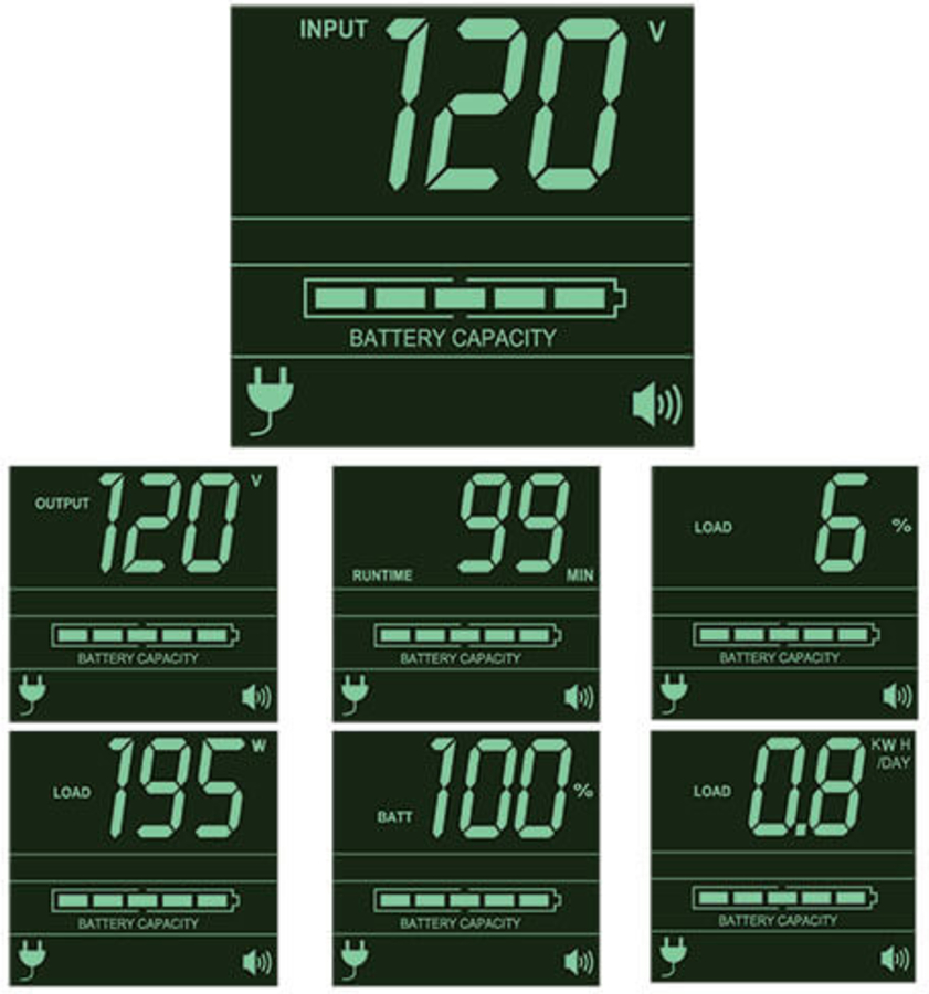 HID-compliant USB interface enables integration with built-in power management and auto shutdown features of Windows and Mac OS X. Network communications ports enable detailed monitoring of equipment load levels, self-test data and utility power conditions. PowerAlert UPS monitoring and auto shutdown software is available via free download. Switched output load banks enable scheduled and real-time remote reboot and load shedding of select outlets. Emergency Power Off (EPO) interface. LCD display panel easily rotates for viewing in rackmount or tower configurations. Audible alarm with push-button momentary alarm-cancel and silent-mode configuration options. Programmable self-test. Field-replaceable, hot-swappable battery modules.