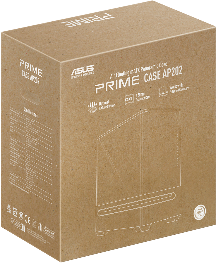 ASUS Prime AP202 ARGB The ASUS Prime AP202 ARGB is a versatile panoramic mATX chassis designed to showcase system components with style. A curved tempered glass panel extends seamlessly from the front to the side, offering spectacular views of components from almost any angle. A patented slot vent provides optimal cooling for the graphics card, and an integrated ARGB light band works seamlessly with Aura Sync. |