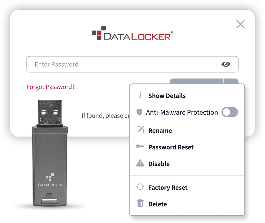 The DL GO Encrypted Flash Drive Protect your data with DL GO, a secure USB drive designed for both performance and peace of mind. It combines strong hardware encryption with easy biometric unlock using Windows Hello or Touch ID, plus optional password-based two-factor authentication for added security. The DL GO ensures quick, reliable data transfers, while meeting strict compliance standards. Perfect for anyone who needs convenience, speed, and top-tier protection in one sleek device.