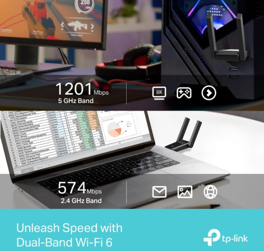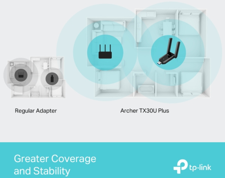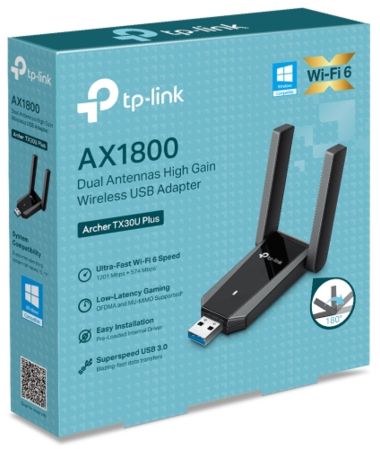 Unleash Speed with Dual-Band Wi-Fi 6 The Archer TX30U Plus adapter enhances your productivity and entertainment experience, delivering up to 1800 Mbps speeds.*