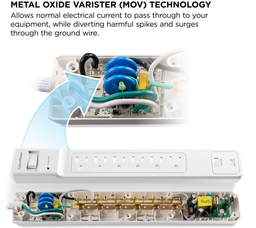 CyberPower CSP604UCW 6 Outlet Surge Strip with USB