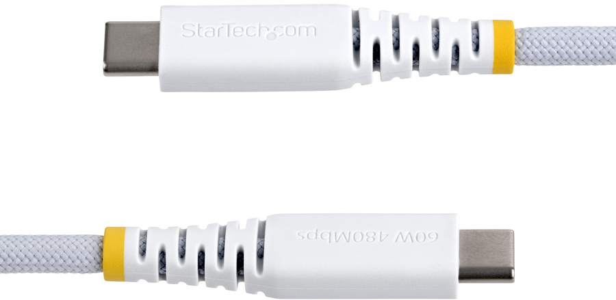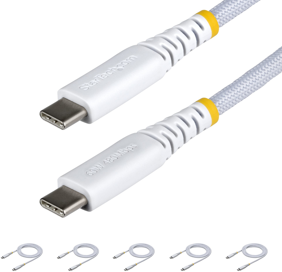 StarTech.com 5-Pack 3ft (91cm) White USB-C Charging Cable, 60W (3A) PD, Dual-Layer Braided Nylon/TPE Jacket, Rugged USB C Cord