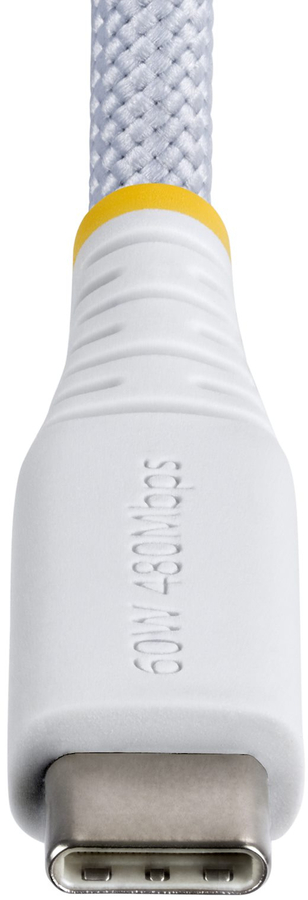 The USB-C Charging Cable features a TPE inner jacket with a braided nylon exterior for optimal flexibility and wear protection. The durable nickel-plated connectors are designed for frequent daily use, and are rated to operate beyond 10,000 insertion cycles.