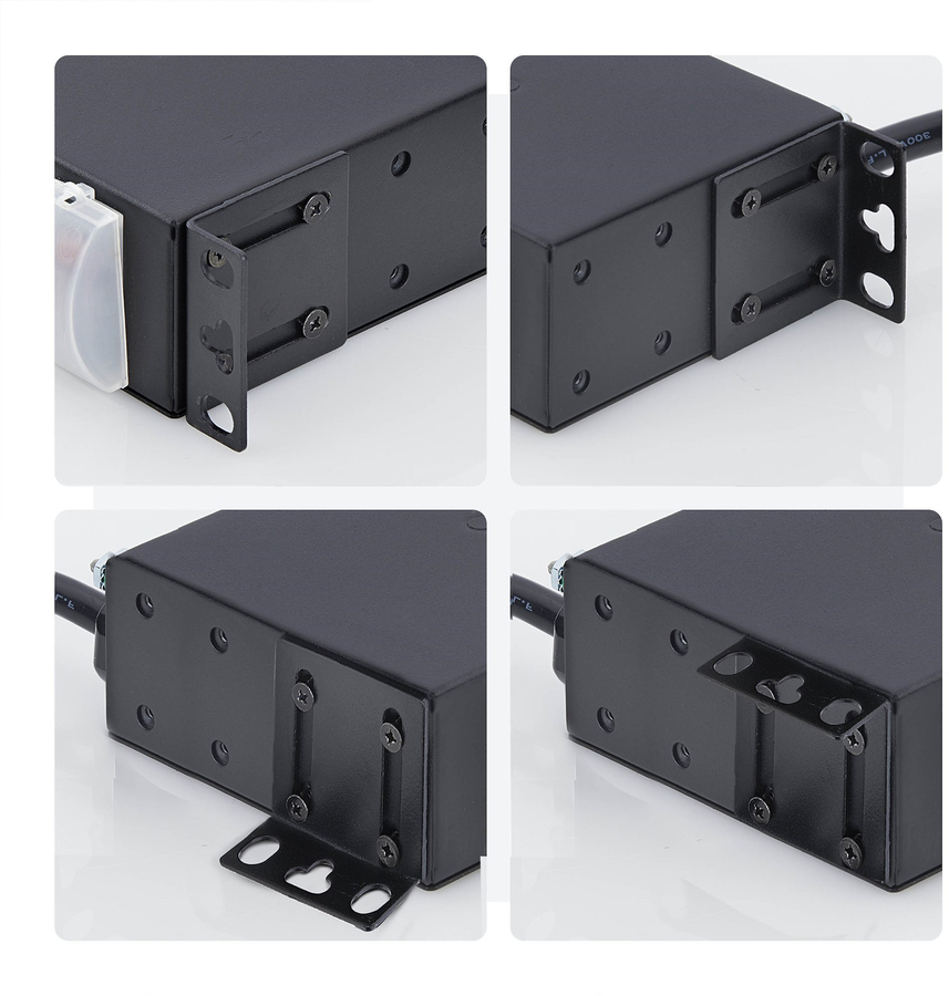 Power delivery unit is TAA-compliant and includes 4-way mounting brackets that provide flexibility for horizontal or vertical mounting. The PDU is compatible with standard 19" EIA-310 racks that are at least 4in (10.1cm) deep and is constructed from durable, powder-coated SPCC steel for long-term reliability. Additionally, the built-in 8ft (2.4m) power cord provides the flexibility and reach needed to accommodate various configurations. |