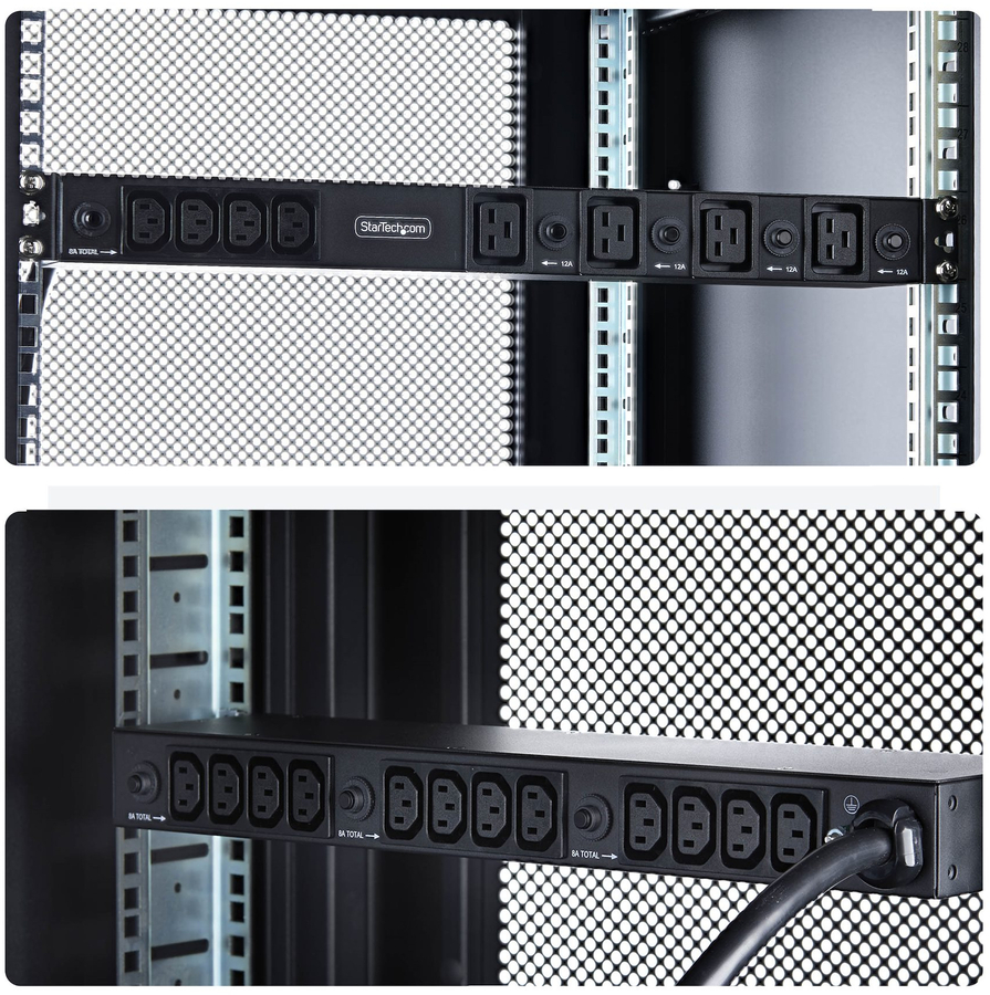 StarTech.com 20-Outlet Rackmount PDU, 1U Server Power Strip, 8x Front and 12x Rear Ports, Mounted Power Distribution Unit