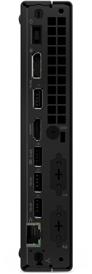 Enjoy unmatched productivity with faster USB speeds and multiple ports. Connect the ThinkCentre M70q Tiny PC to up to four displays to power through tasks with vast memory and expandable storage. With an optional USB-C® (Thunderbolt™ 4) port and Neural Processing Unit (NPU), enhance hybrid and digital workplace expansion for a broadened ecosystem.