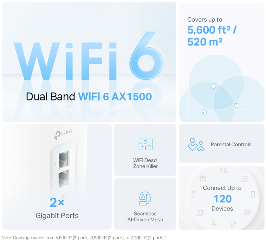 Mesh Network Powered by Wi-Fi 6 Armed with WiFi 6 technology, Deco whole home mesh WiFi is designed to deliver a huge boost in coverage, speed, and total capacity. Get on the ultra-fast mesh WiFi to enjoy the future network that loads faster and connects more.