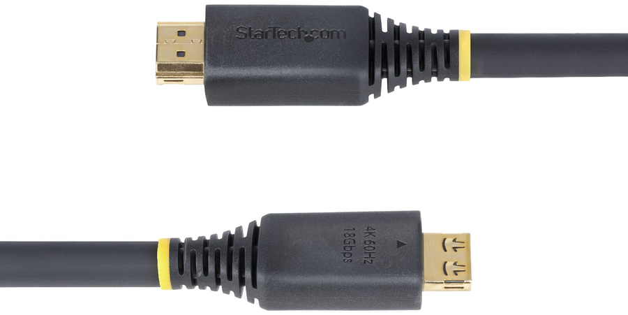 The HDMI UHD Cord features gold-plated gripping connectors to prevent accidental disconnections. The connectors attach securely to HDMI device ports, making this cable ideal for mounted and critical setups such as security systems and HDMI switches.