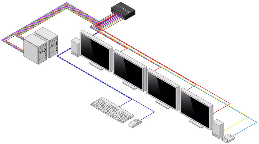 Control multiple computers with a single set of peripherals while isolating data paths between systems and ensuring no data is ever stored