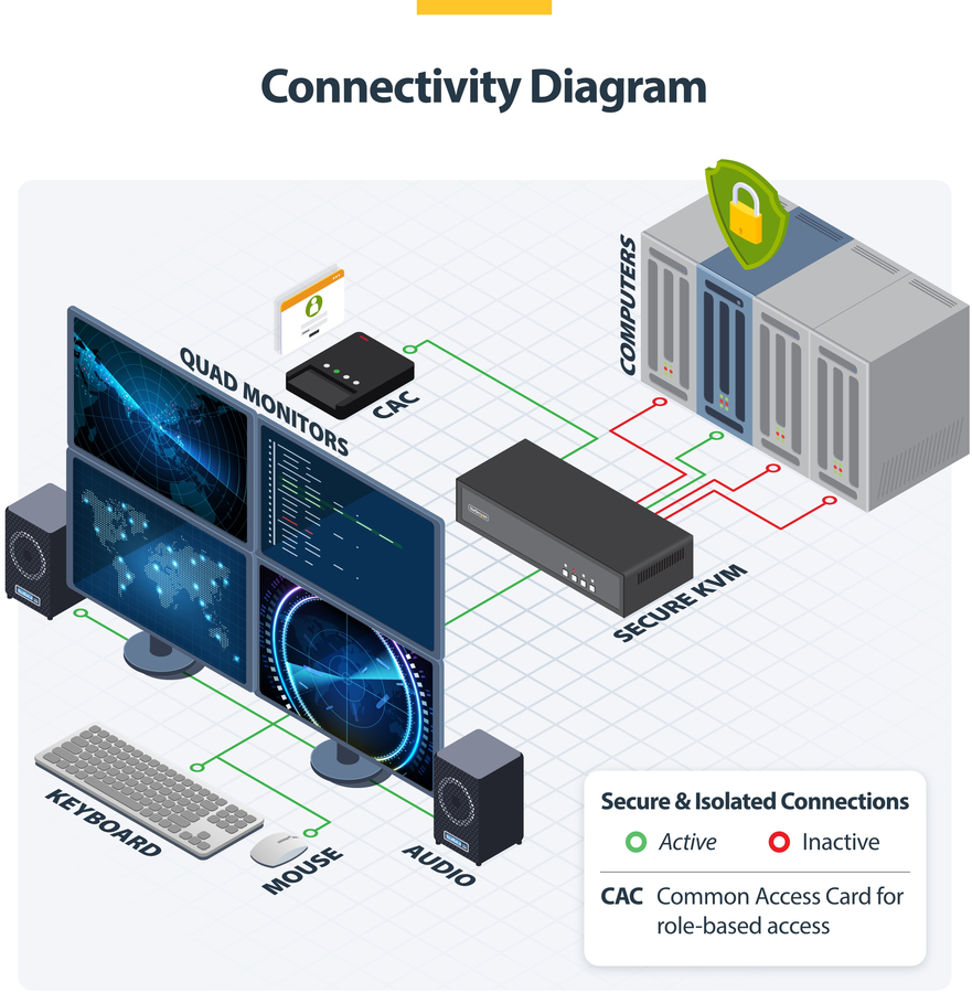 Operate multiple secure systems from a single workstation with the NIAP-Certified KVM switch, delivering uncompromising security, enterprise-grade performance, and seamless control over up to four computers with four displays.