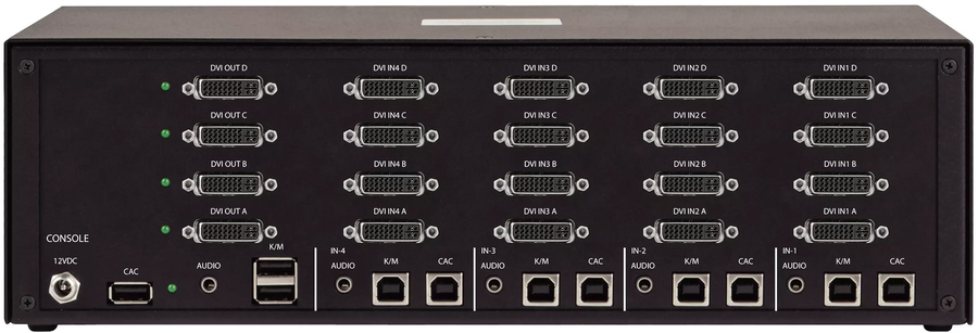 Manage up to four DVI-enabled desktops, workstations, or servers from one mouse, keyboard, and four 2560x1600 60Hz monitors. Status LEDs on the console ports, CAC port, and port selection indicators provide instant visual feedback, while NIAP certification ensures complete system isolation to prevent any data transfer or leakage between connected systems. Integrated anti-tamper switches provide protection from the moment the unit leaves the factory, so any intrusion attempt, whether in storage, transit, or operation, will permanently disable the KVM and trigger clear visual and audible alerts. This makes it ideal for safeguarding operations across security domains or ensuring compliance with strict regulatory requirements.