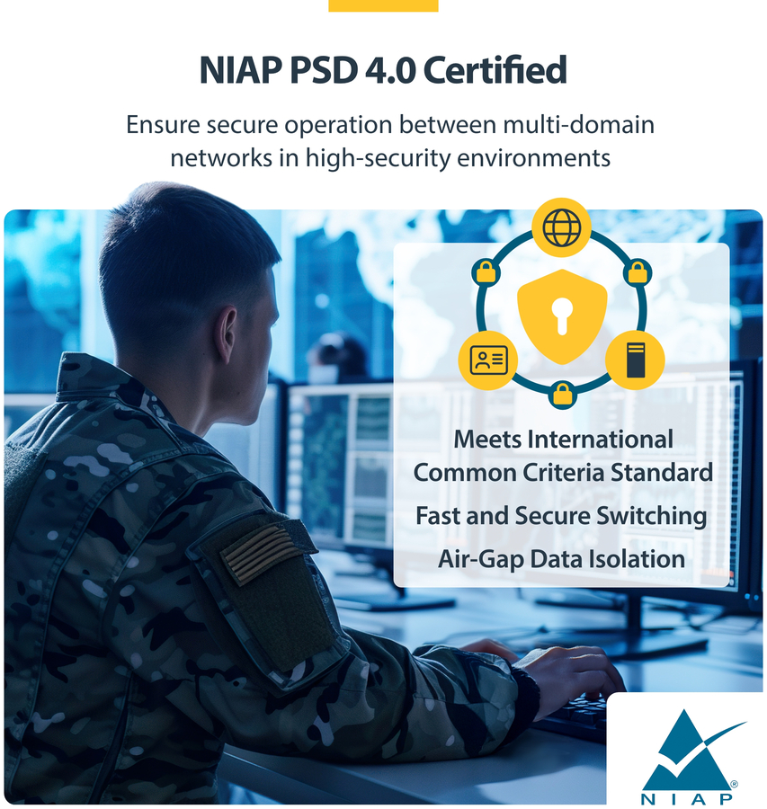 Engineered for IT professionals, our secure KVM switches are built in the USA, NIAP certified, rigorously tested in our Innovation Lab, and trusted by government, military, and enterprise security teams worldwide. Built for environments handling sensitive or classified data, they combine high-assurance security with the dependable performance required for mission-critical operations. |