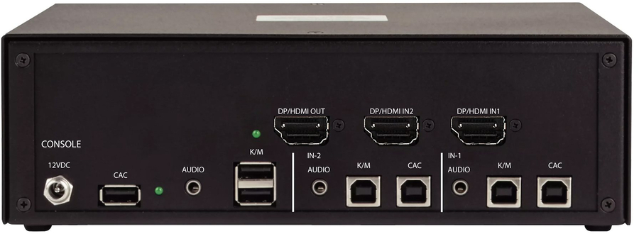 Manage two HDMI or DisplayPort-enabled desktops, workstations, or servers from one mouse, keyboard, and a 4K 60Hz monitor. Status LEDs on the console ports, CAC port, and port selection indicators provide instant visual feedback, while NIAP certification ensures complete system isolation to prevent any data transfer or leakage between connected systems. Integrated anti-tamper switches provide protection from the moment the unit leaves the factory, so any intrusion attempt, whether in storage, transit, or operation, will permanently disable the KVM and trigger clear visual and audible alerts. This makes it ideal for safeguarding operations across security domains or ensuring compliance with strict regulatory requirements.