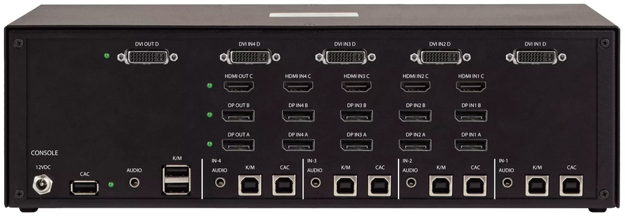 Manage up to four HDMI, DisplayPort, and DVI-enabled desktops, workstations, or servers from one mouse, keyboard, and four monitors. Status LEDs on the console ports, CAC port, and port selection indicators provide instant visual feedback, while NIAP certification ensures complete system isolation to prevent any data transfer or leakage between connected systems. Integrated anti-tamper switches provide protection from the moment the unit leaves the factory, so any intrusion attempt, whether in storage, transit, or operation, will permanently disable the KVM and trigger clear visual and audible alerts. This makes it ideal for safeguarding operations across security domains or ensuring compliance with strict regulatory requirements.