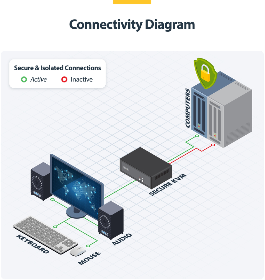 Operate multiple secure systems from a single workstation with the NIAP-Certified KVM switch, delivering uncompromising security, enterprise-grade performance, and seamless control over two computers with a 4K 30Hz display.
