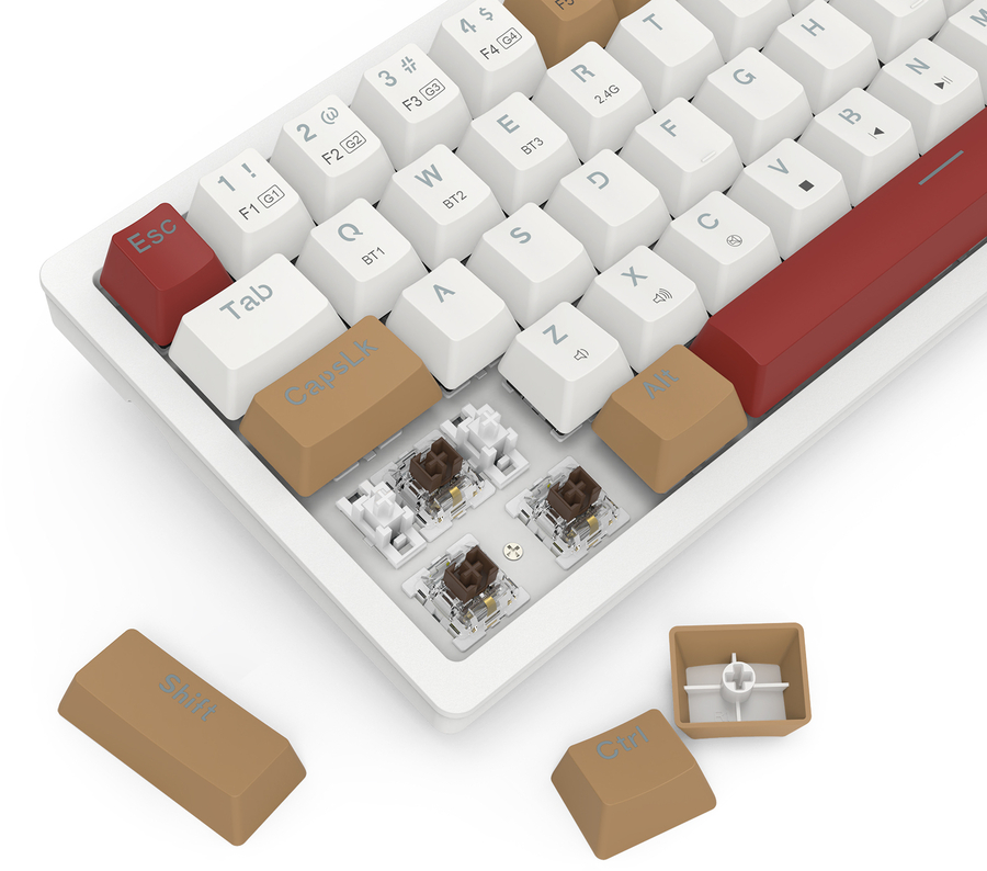 Hot-swap and Durable Keycaps The hot-swap feature allows for quick switch replacement without the need for soldering, and the durable PBT keycaps with an attractive color finish ensure long-lasting aesthetics and user comfort. |