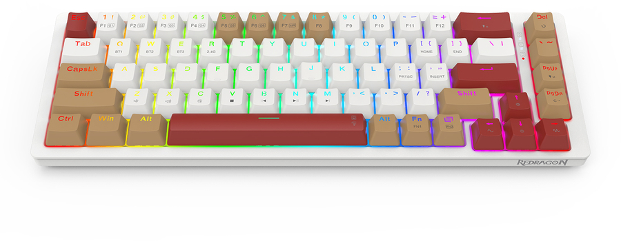 K677WLR-RGB-PRO Rammus is a modern device offering three connectivity modes: Bluetooth, 2.4G, and wired (USB-C), providing full flexibility for use with various devices. Dynamic RGB backlighting allows you to customize the appearance to your style, while Redragon Brown mechanical switches ensure a quiet, tactile response, ideal for both work and gaming. Additionally, the hot-swap function enables quick switch replacement, and durable PBT keycaps guarantee long-lasting and comfortable use over time.
