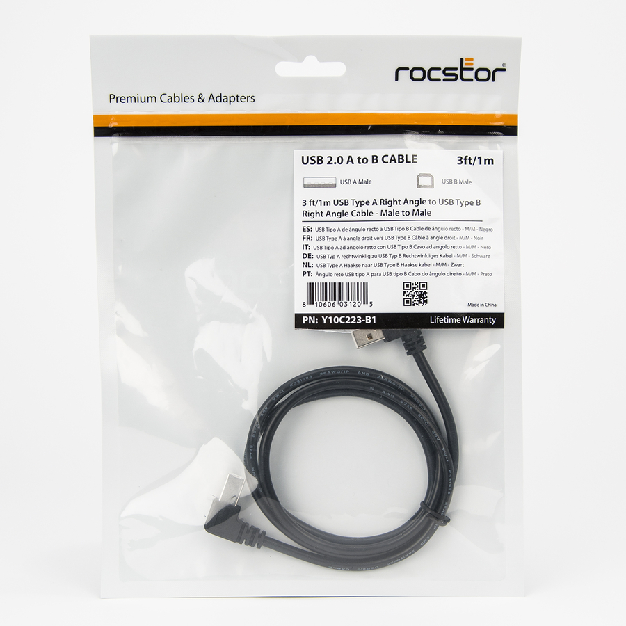 Rocstor 3-foot USB A to B Right Angle Cable