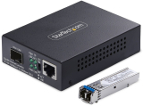 This Gigabit Ethernet to fiber media converter offers a reliable way to extend your network up to 20 km (12.4 mi) using single-mode LC fiber, providing increased range, enhanced security, and reduced interference compared to copper-based connections. It's TAA compliant and designed for government and commercial applications where long-distance and rack-mountable fiber access is needed.
